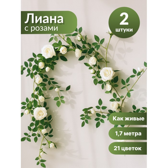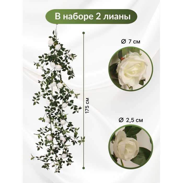 Цветы искуственные Розы Амазон (29 цветов, 175см, 2 ветки) белый 265908