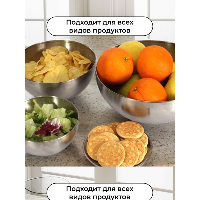 Набор Мисок из нержавеющей стали 3шт (15см, 20см, 25см-по 1шт+блюдце 14см - 2шт) серебро 263333