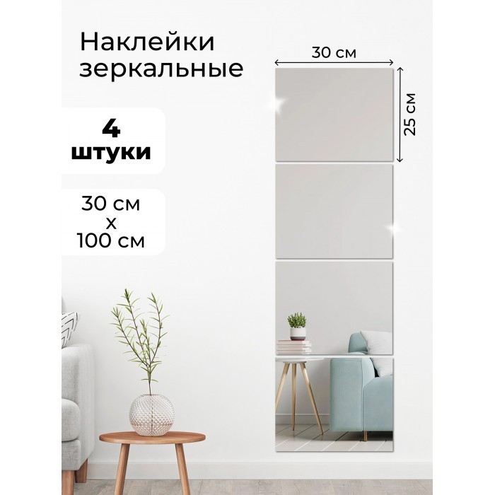 Интерьерные зеркальные наклейки Прямоугольник 4 шт (30*25 см) 265982