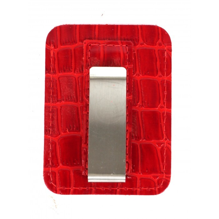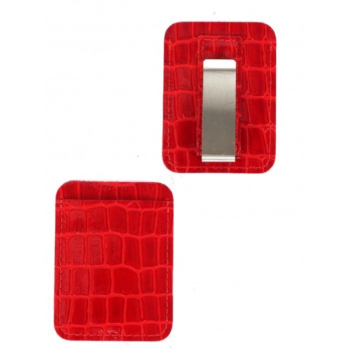 Обложка пропуск/карточка/проездной Croco-фк-1009 металл клипса д/денег, натуральная кожа красный крокодил (203) 263631