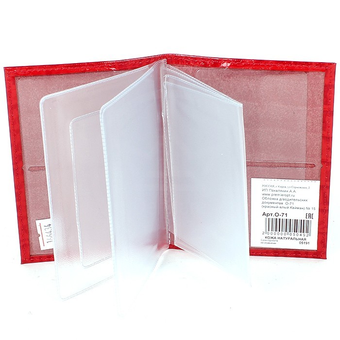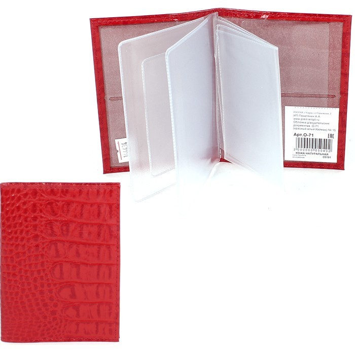 Обложка для автодокументов Premier-О-71 натуральная кожа красный-алый кайман (15) 166434