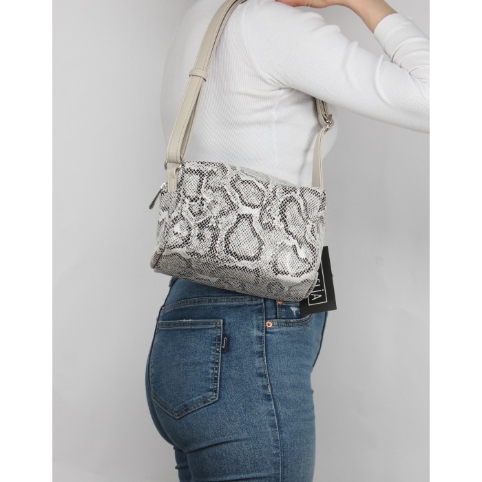 Сумка женская натуральная кожа ADEL-114/ММ (отделка ИСК/КОЖА), 1отд, плечевой ремень, серый питон SALE 263803