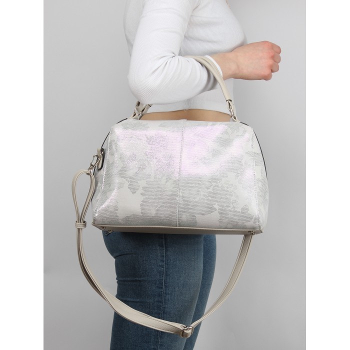 Сумка женская натуральная кожа ADEL-194/114/3в/ММ (отделка ИСК/КОЖА), 1отд плечевой ремень, бежевый цветы SALE 263660